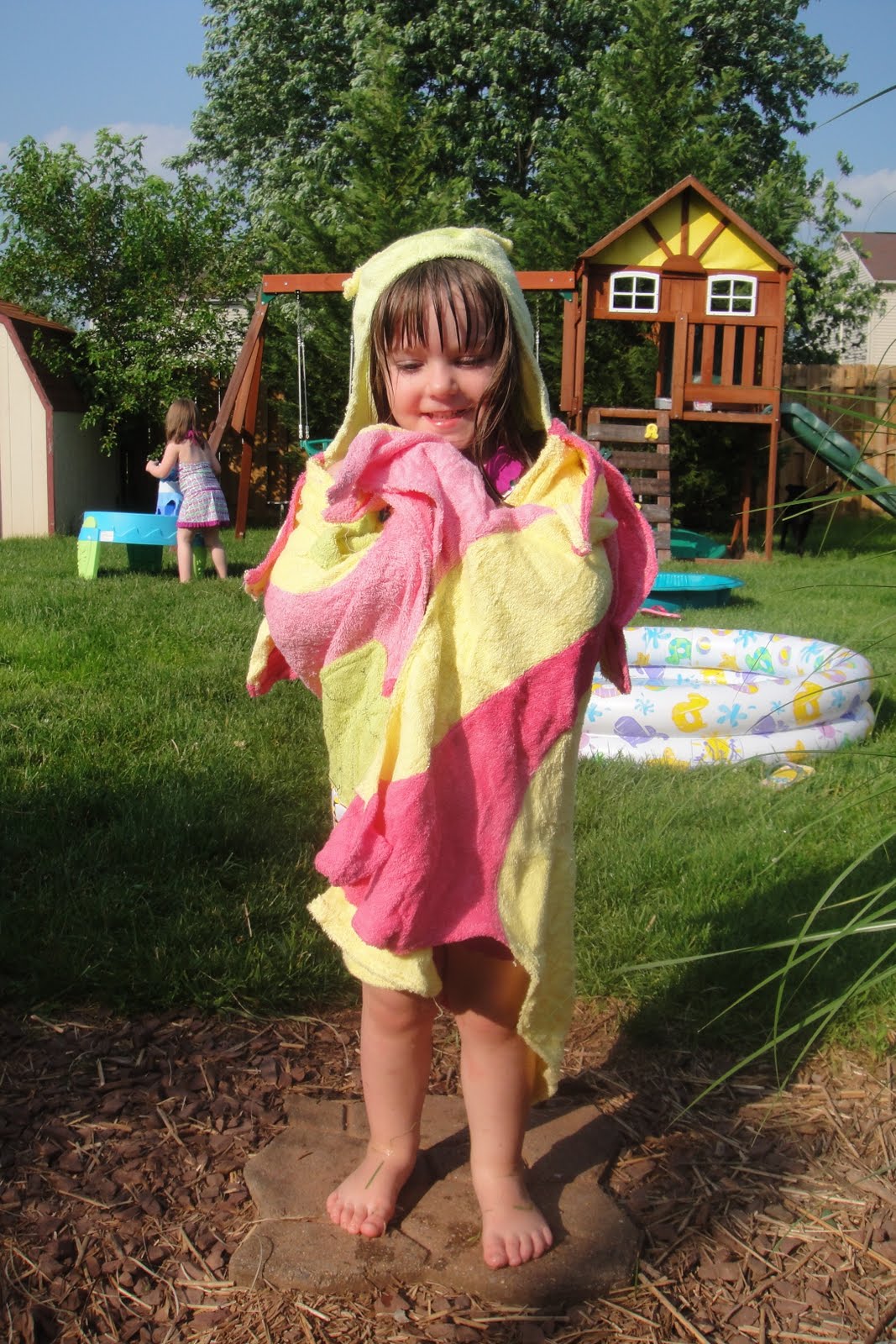 There is even a snap near the neck/shoulders to keep the towel on active children! I love that feature of these towels, my three year old always want to run around in her hooded towels after a bath or a dip in the pool, but cries when they slip off. No worries about that with these towels!
